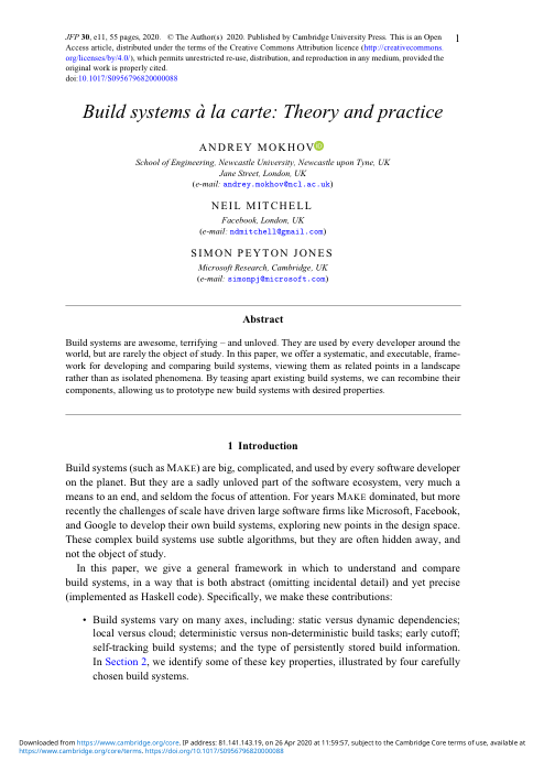 Title: Build systems à la carte- Theory and practice Authors: Andrey Mokhov, Neil Mitchell, Simon Peyton Jones Category:articles Number of Highlights: 2 Source URL: https://ndmitchell.com/downloads/paper-build_systems_a_la_carte_theory_and_practice-21_apr_2020.pdf Date: 2024-10-15 Last Highlighted: 2024-10-15